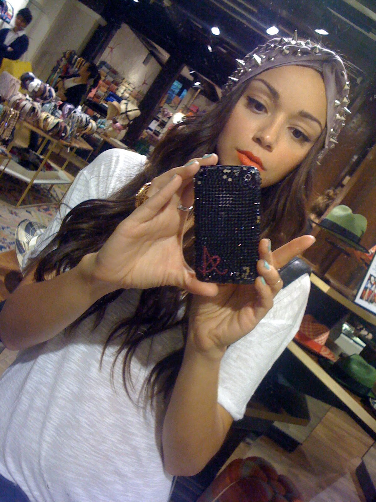 Love the headpiece! Also love the cover of your iPhone. (;