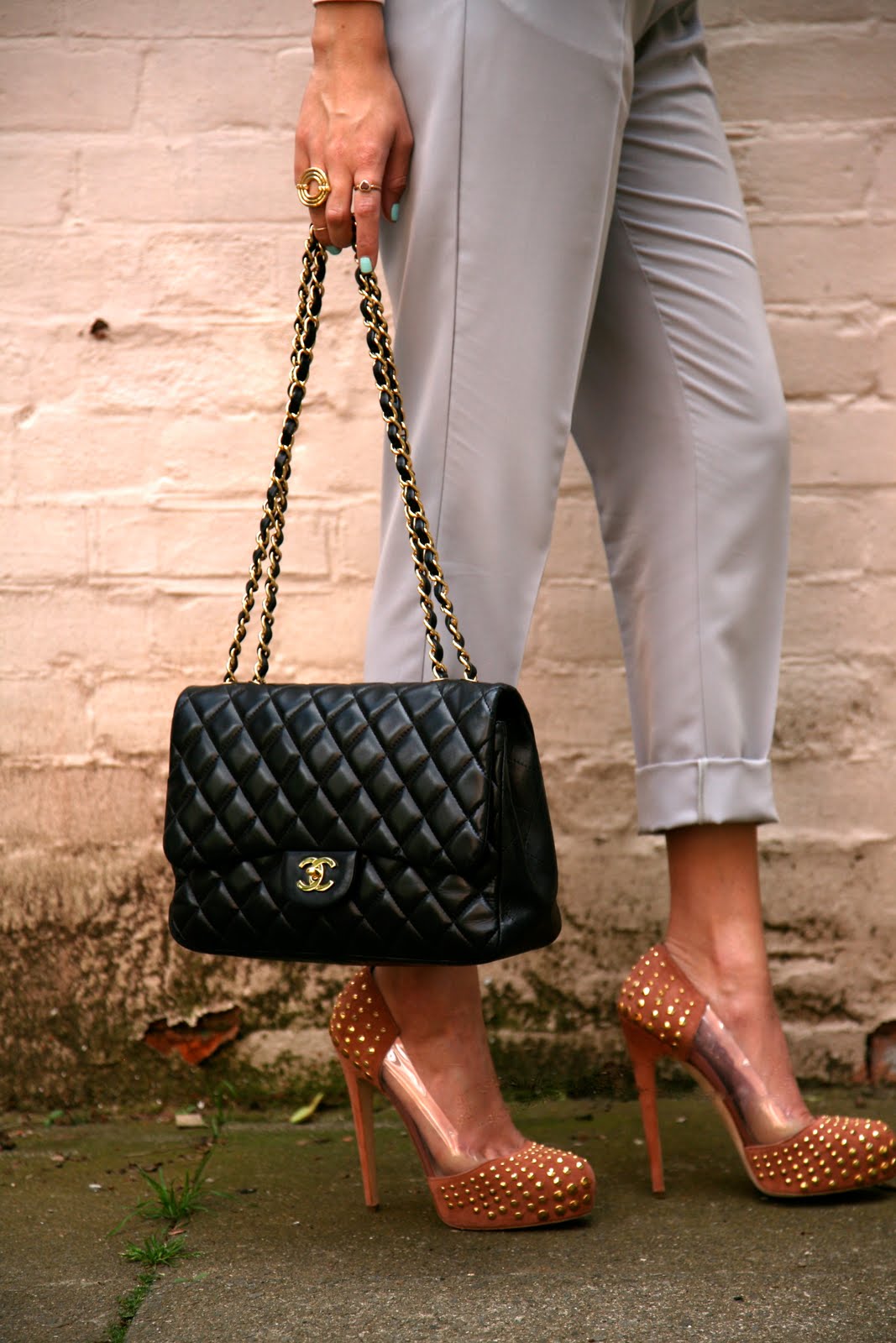 Despite the pain these shoes cause I am SO GLAD you did another post including them. I've been waiting for them. I looooove them. perfect nudey tone, killer platform, that cool little clear bit and my god the studdddddds!