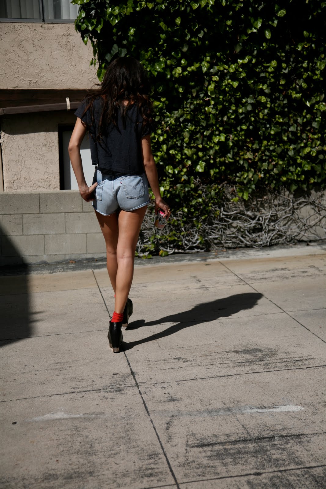 Denim Shorts: Vintage. Crop T. Shirt: American Apparel. Shoes: Jeffery Campbell