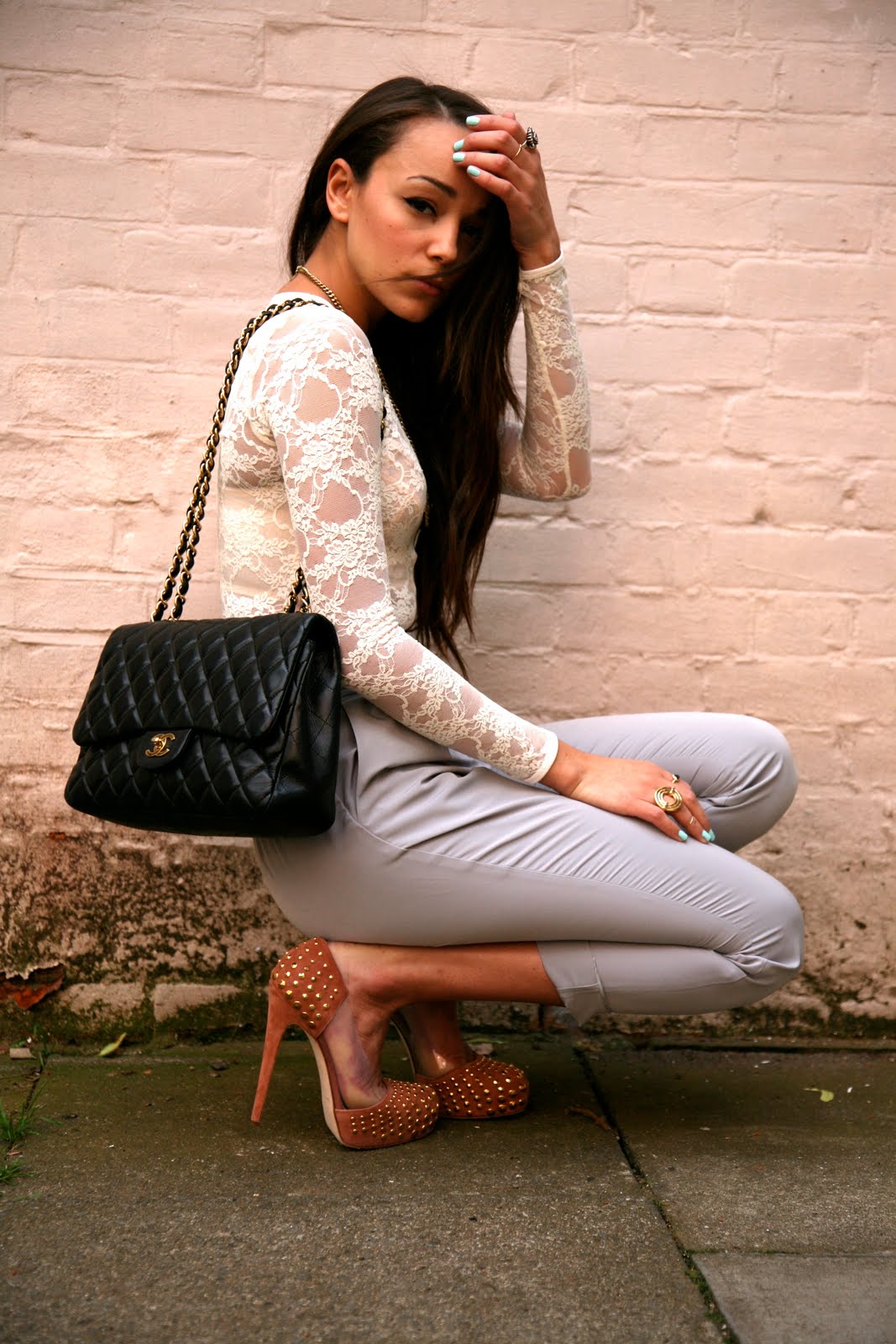 how weird, i was given a lace dress yesterday at a blogging event, and i was planning on wearing at as a top tomorrow, hehe. you look lovely, my dear. i adore your trousers, i have been looking for a pair like that but i just don't think they would suit me. i've been missing your regular posts, hopefully everthing will be back to normal soon 🙂 love, jazzabelle. x