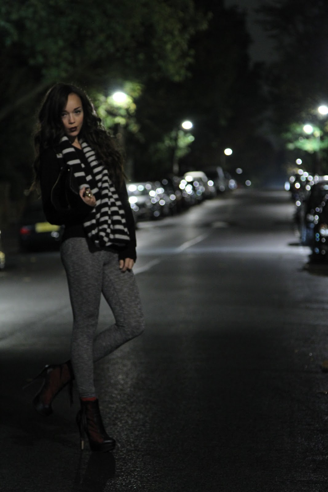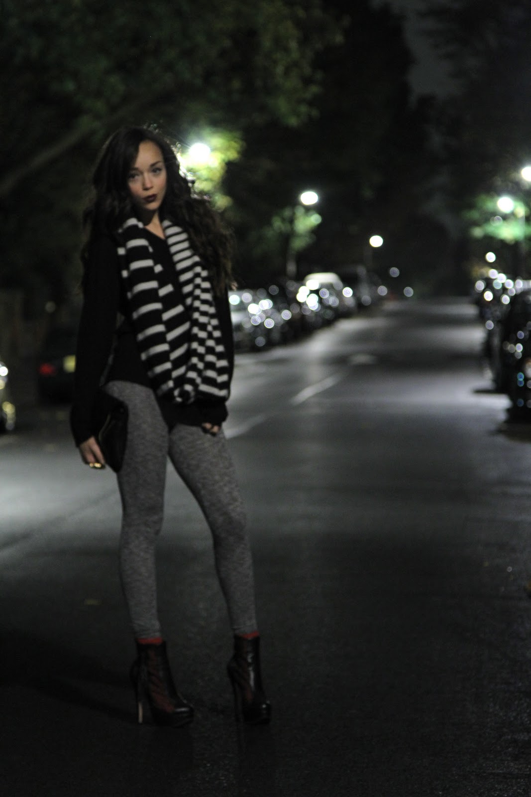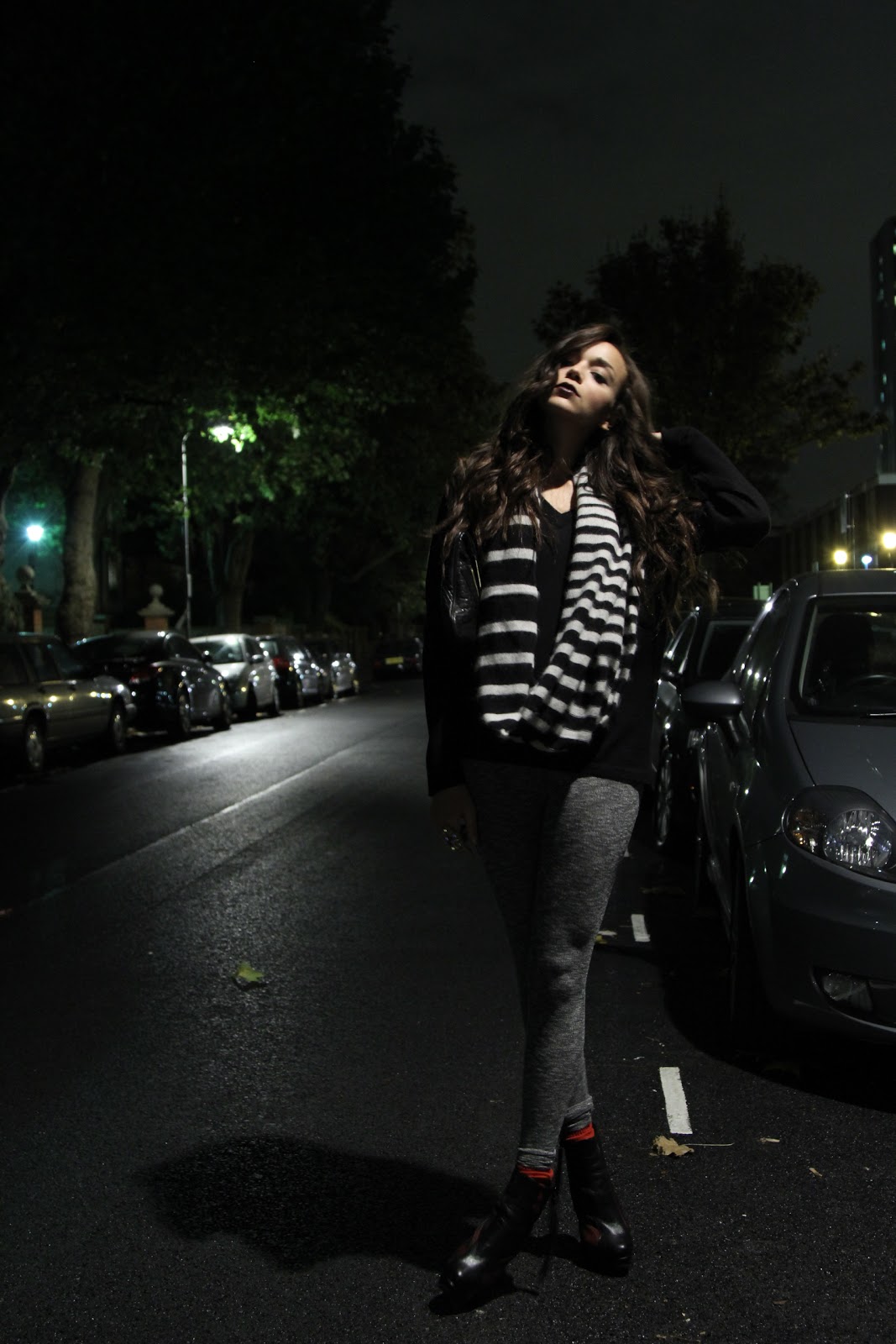 Leggings & Scarf: TopShop. Jumper: Mens’s Reiss.