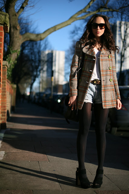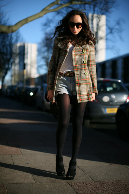 love the tartan jacket paired w/the denim shorts!